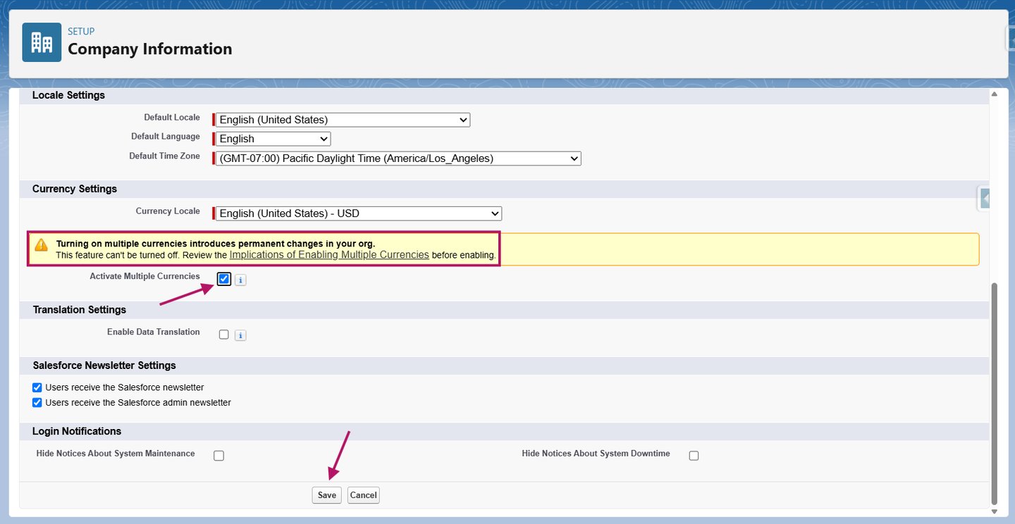 Antes de activar Multiple Currencies, ten en cuenta que no se puede desactivar. Revisa las consideraciones previas en el siguiente enlace.