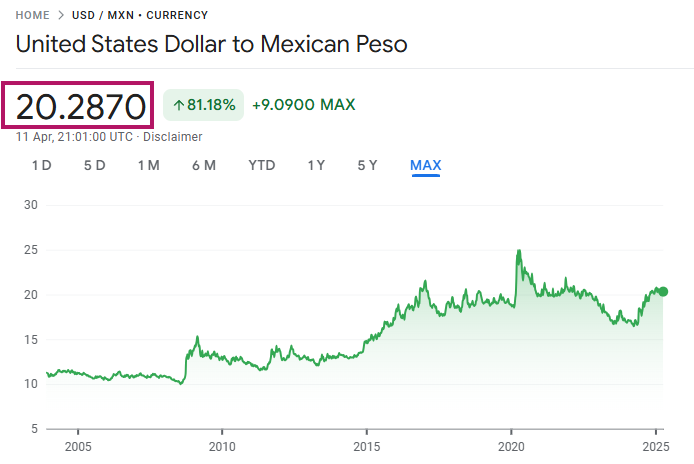 Para mostrar otra divisa, simplemente debemos dirigirnos a la esquina inferior derecha y seleccionar, en este caso, Peso Mexicano. Al hacer esto, podremos ver que el monto se convierte automáticamente a pesos.
